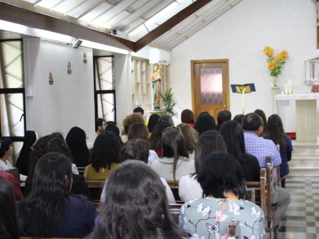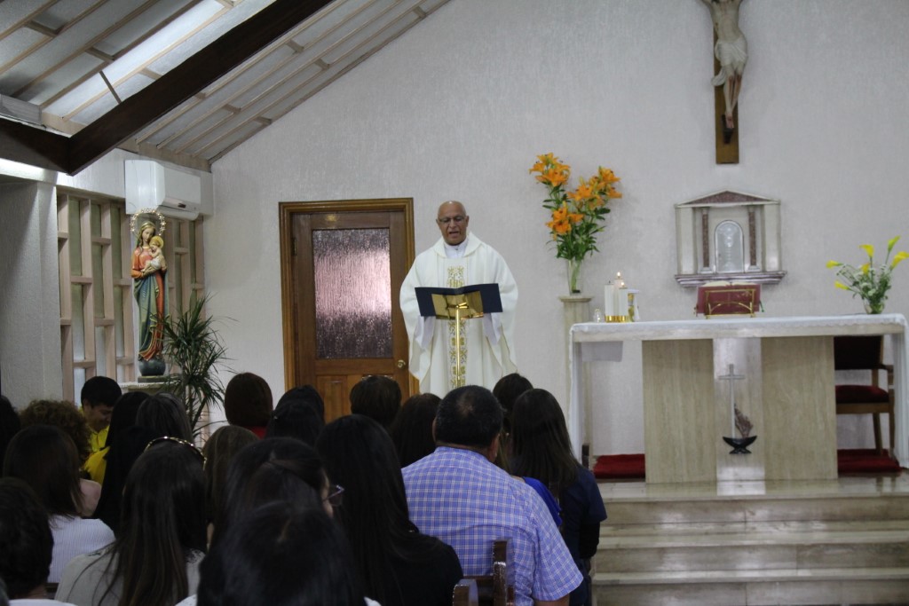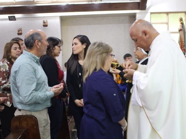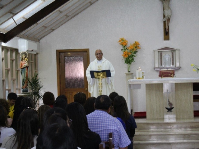 Este viernes 22 de noviembre, la comunidad educativa del Liceo Santa Marta de Talca conmemoro un nuevo aniversario de la pascua de nuestro padre fundador, el beato Tomas Reggio. con una eucaristía presidida por nuestro capellán, el padre Pedro Castillo. donde profesores y asistentes de la educación, compartieron el pan y el vino, alimento de nuestro espíritu.