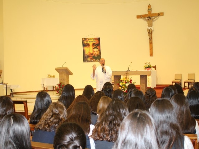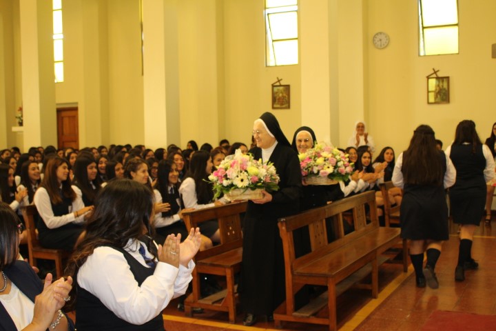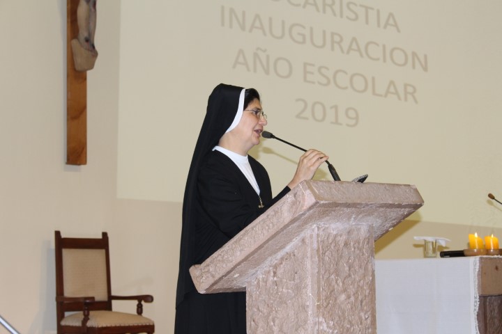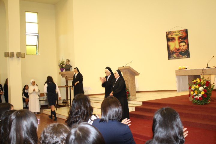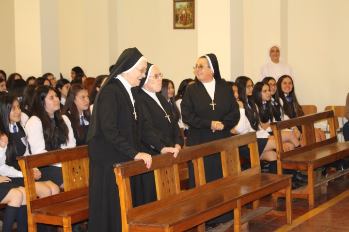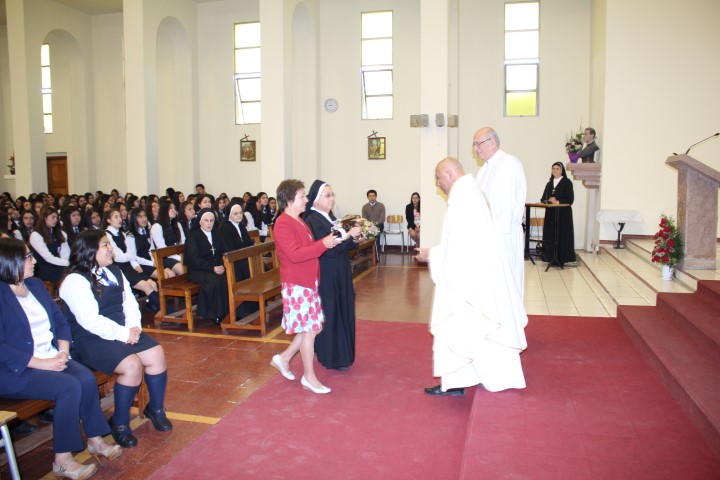 En esta oportunidad la madre Carla Ruggiero dirigió unas palabras a los presentes donde expresó su alegría de visitar El liceo Santa Marta de Talca, lugar de inicio la labor pedagógica y espiritual en Chile y Latino américa.