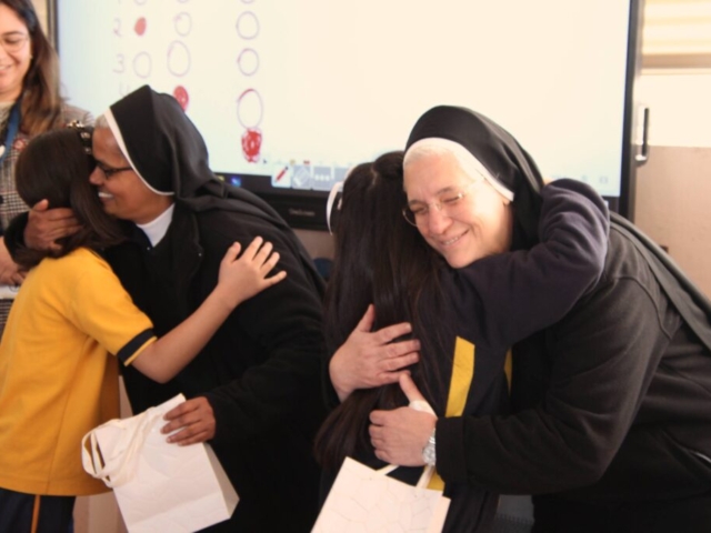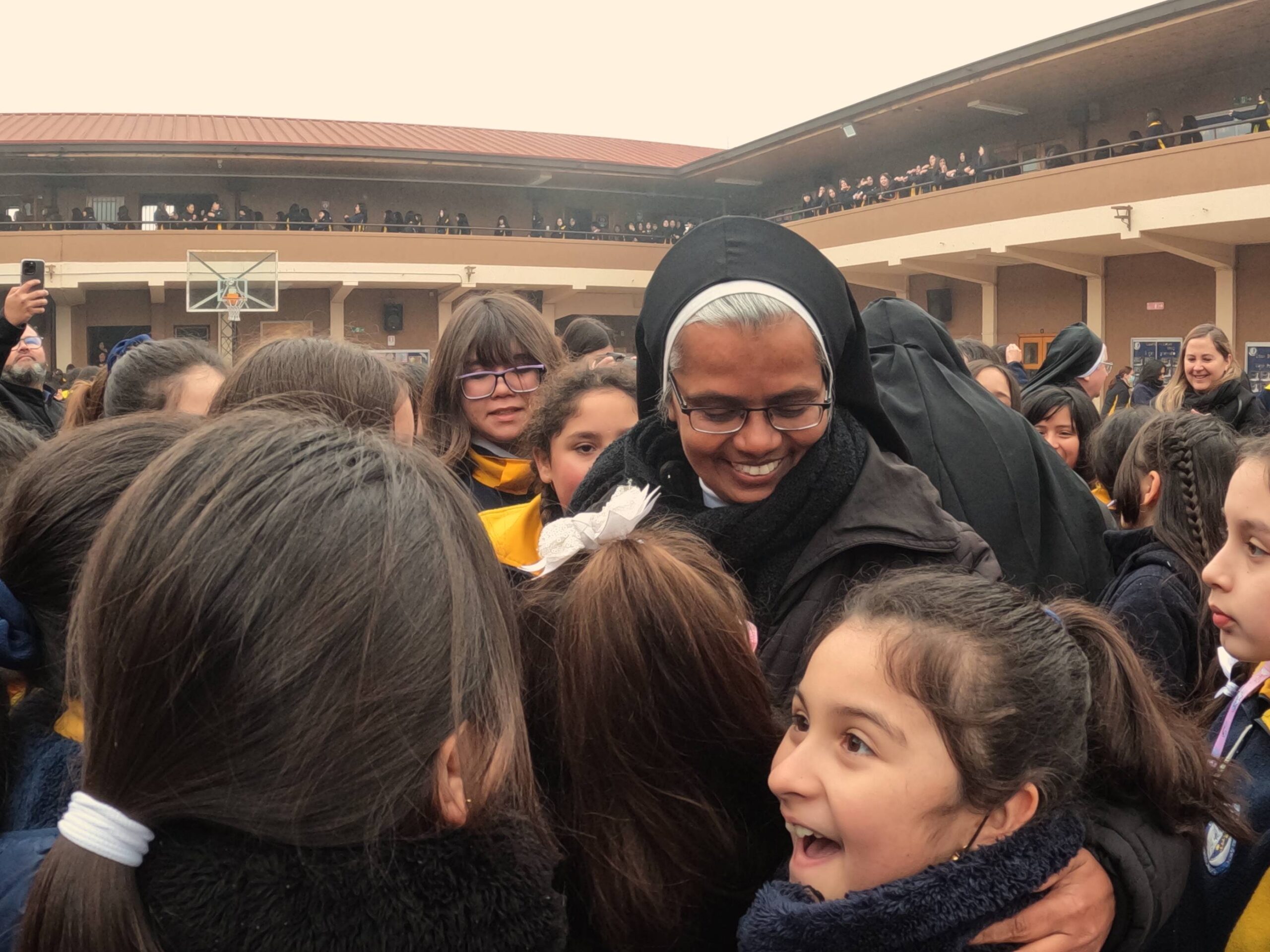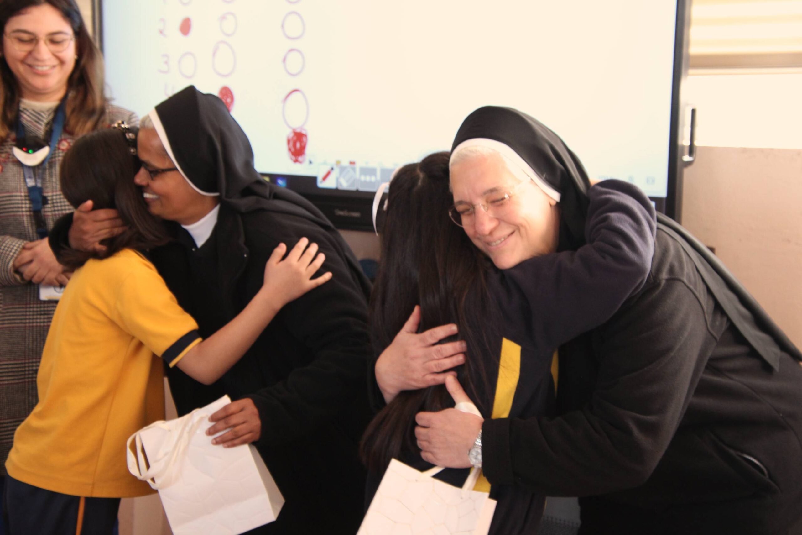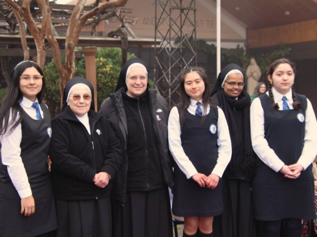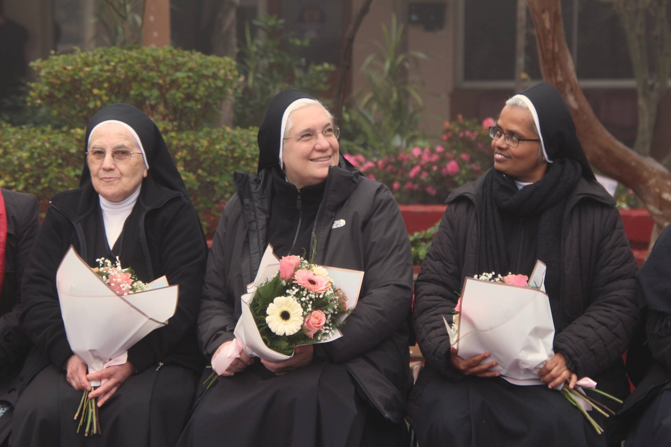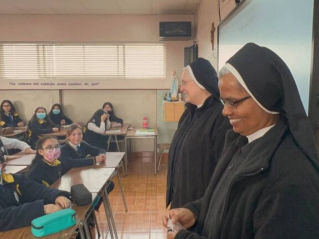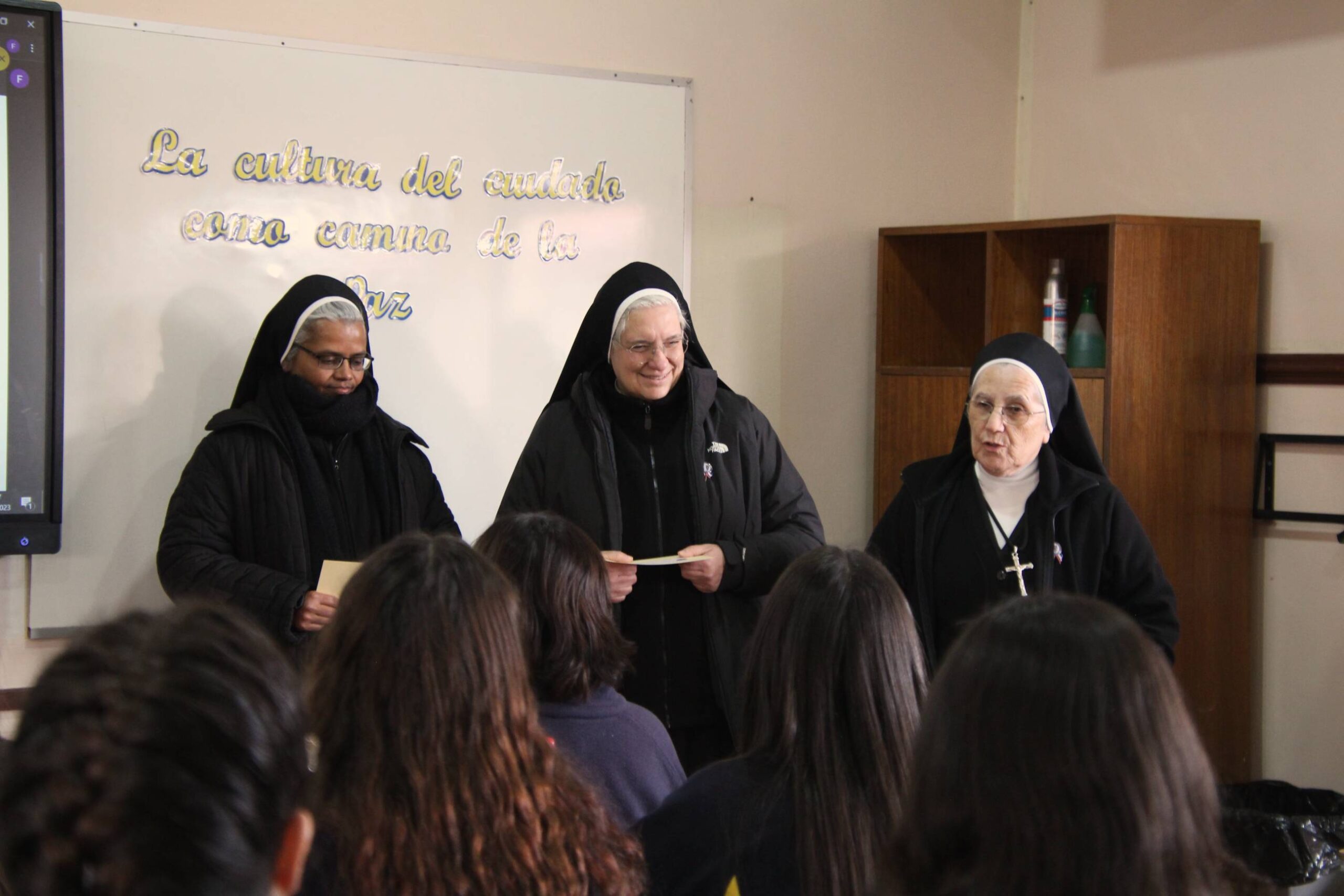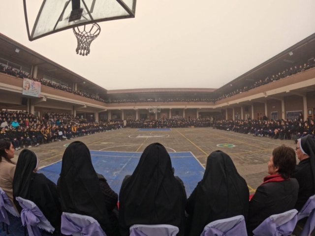 Sor Teresa Aceituno Farías, agradeció el compromiso de los docentes, y su importante labor y colaboración para el despliegue de este proyecto educativo, en esta ocasión felicita al profesor Miguel Guerrero quien ha tenido un notable compromiso preparando a la Banda Femenina de Guerra, y por supuesto, a la coordinación del equipo de Inspectoría General y a quienes le colaboraron en la preparación de todas las actividades itinerantes de saludo, reconocimiento y despedida para nuestras ilustres visitas: Sor Chiara, Sor Bindu y Madre Nazarena.