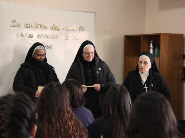 Este martes 8 de agosto del 2023, en las dependencias del Liceo Bicentenario de Excelencia Santa Marta, el equipo docente, asistentes de la educación, padres y apoderados y las estudiantes, liderados por la Dirección, Inspectoría General y la Unidad Técnico Pedagógica, homenajearon y despidieron a Sor Chiara, Sor Bindu y Madre Nazarena.