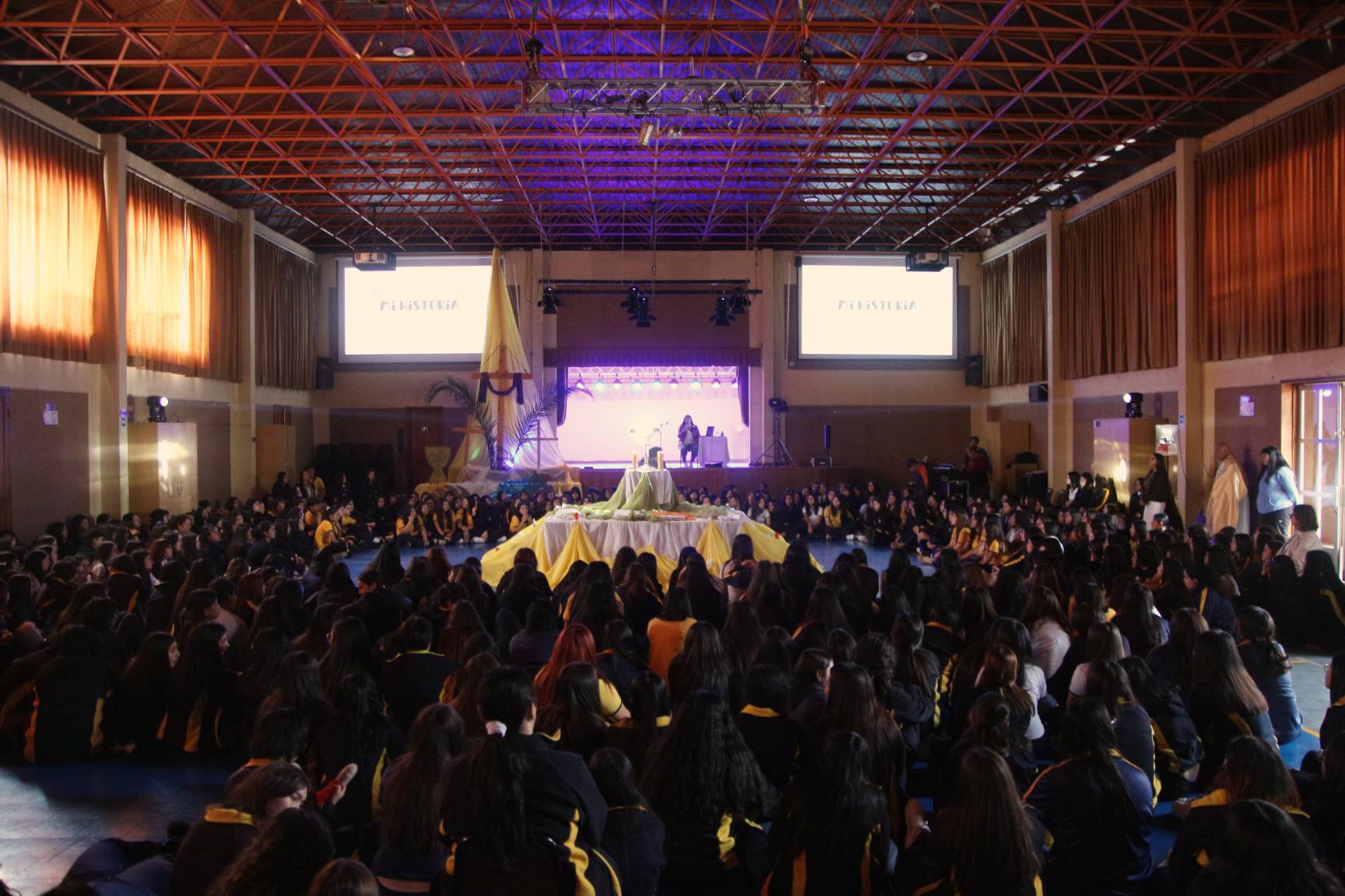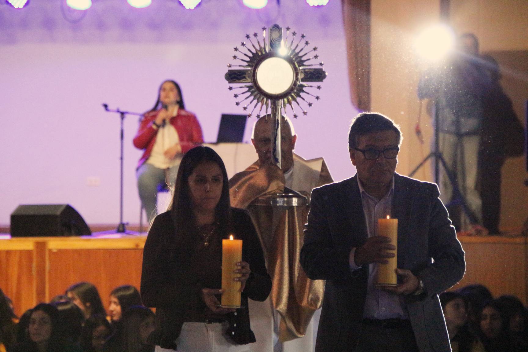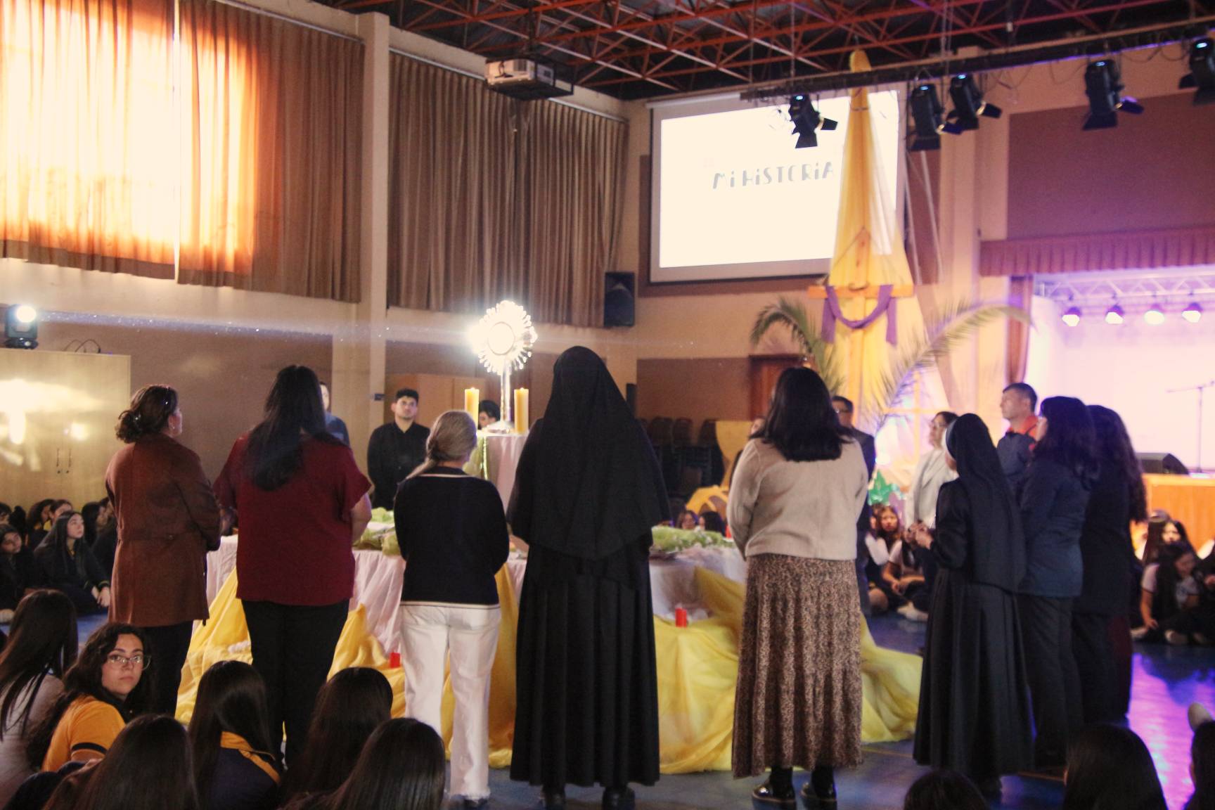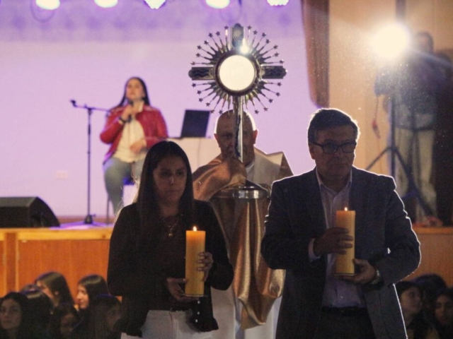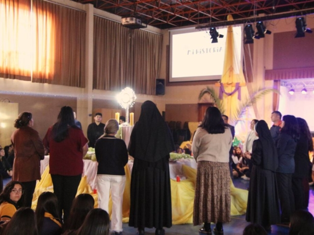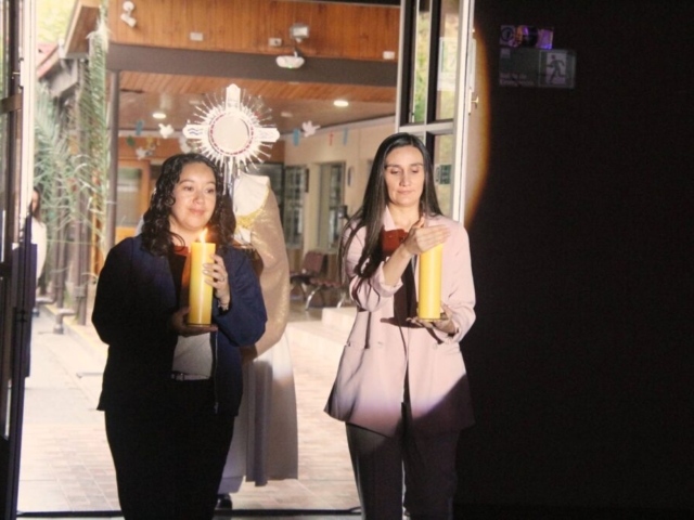 Las estudiantes participaron con gran devoción, acompañando a Jesús Sacramentado en un espacio íntimo de encuentro, silencio y reflexión, fortaleciendo así su vida espiritual y su relación con el Señor.